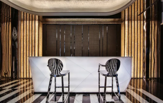 橫平豎直的不銹鋼線條連接成面,能夠增強空間的平衡感和縱深感,橫向闊遠,縱向拔高,為空間創造妙不可言的精致度。